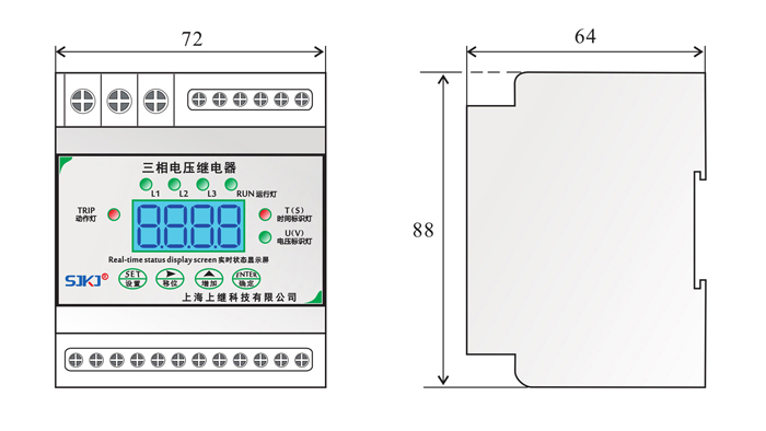 1) 本繼電器采用專用芯片、集成電路為微機型繼電器,數(shù)碼管顯示監(jiān)測電壓。