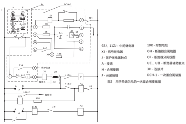 DH-1型重合閘繼電器用于輸電線路上實現三相一次重合閘的控制回路中 。