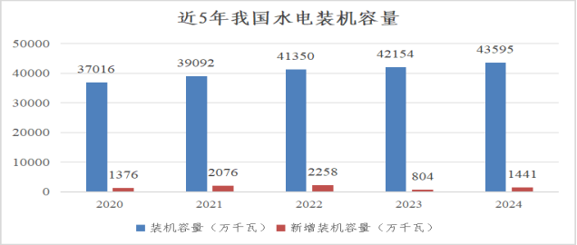 水電作為常規電力中**的可再生能源,2024年總體?呈現出穩定增長的發展趨勢,并且在全球范圍內保持**地位。截至當年底,我國水電總裝機容量達到4.36億千瓦,占我國電力總裝機的13.02%,較2023年新增裝機容量1378萬千瓦,同比增長3.2%,其中,常規水電裝機規模3.77億千瓦、同比增加625萬千瓦;抽水蓄能裝機規模5869萬千瓦、同比增加753萬千瓦。全年水電發電量14239億千瓦時,占發電總量的13.53%,僅次于火電,排在第2位;規模以上水電年平均利用小時數為3349小時。在雙碳目標和新能源快速發展的大背景下,水電以其穩定、清潔的特點,成為我國清潔能源供應的可靠保證。