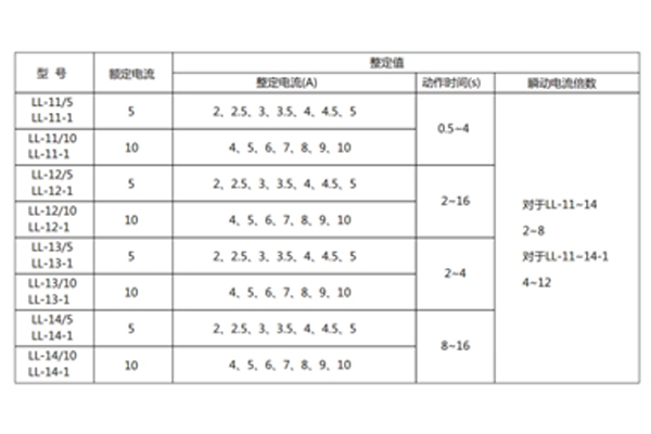 注:特殊規(guī)格LL-10-1(11-1、12-1、13-1、14-1)瞬動(dòng)電流倍數(shù)4-12,其余參數(shù)與LL-10系列對(duì)應(yīng);繼電器的電流線圈允許長(zhǎng)期通過