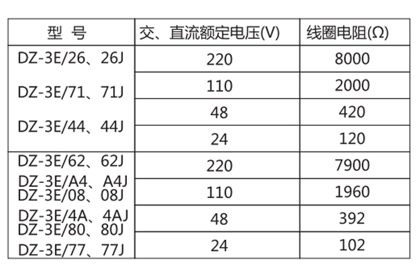 二、DZ-3E/26J中間繼電器的參數